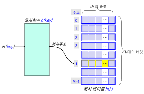 - 하나의 해시 주소에 대응되는 저장 단위